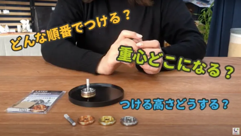 全日本製造業コマ大戦で日本一に輝いた会社が製作した、精密コマ。このコマを販売したところ、お子様たちに大人気だったんです。なんといっても「自分でカスタマイズできる」点がポイント。リングをつける数、順番、高さによって回る様子が変わります。