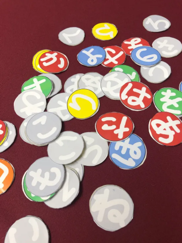 色で文字を覚えるように工夫された教材「あいうえおはじき」