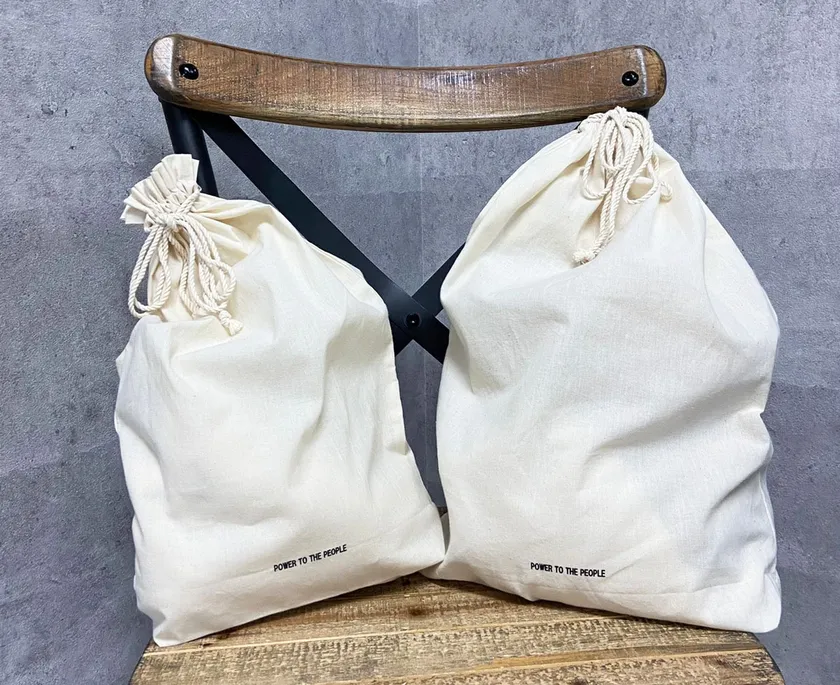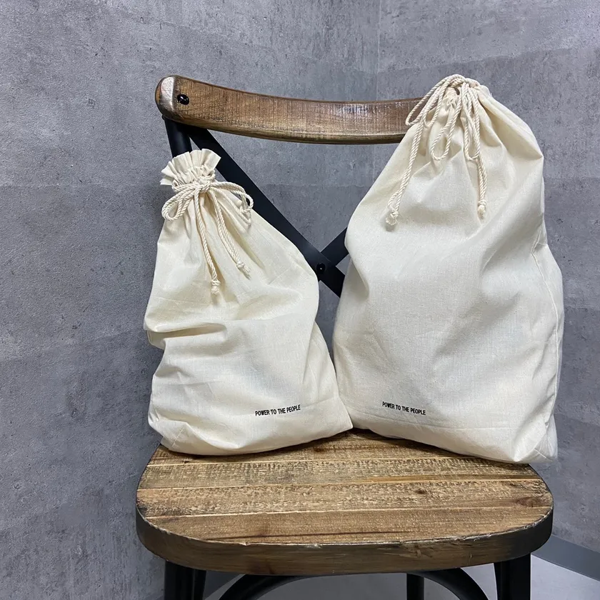 エコの観点から、袋も捨てずに少しでも長くお使い頂けるように、ナイロンや不織布ではなくコットン素材の巾着型のラッピング袋にしました。マチもありバッグインバッグとしてちょっとした旅行などにもお使い頂けます。こちらをご購入時にご希望の方全員に無料でプレゼントラッピングのご対応を致します。