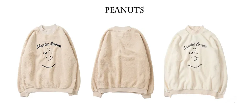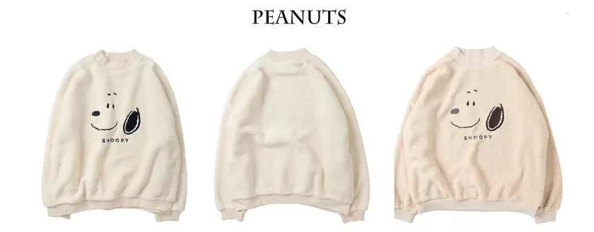 名称 : チャーリーブラウンフェイス柄刺繍ボアトレーナー