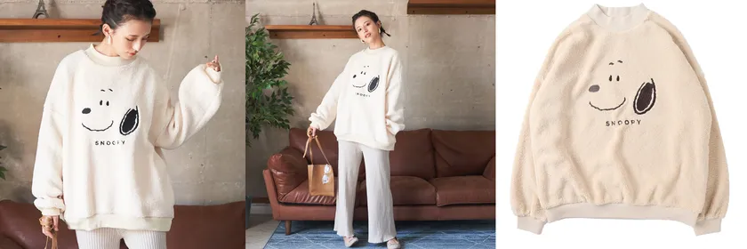 名称 : スヌーピーフェイス柄刺繍ボアトレーナー