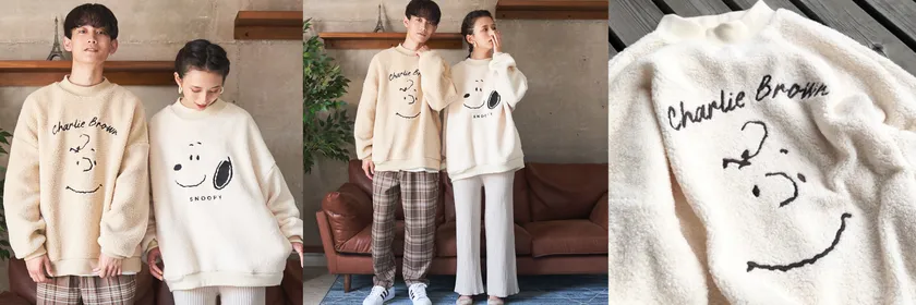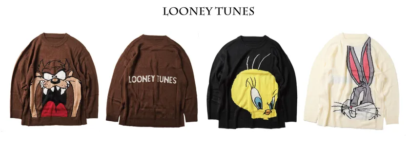 2020年冬物の中でもユニセックスで特に人気だったルーニーテューンズとトムとジェリーのキャラクター柄が目を引くインパクトニットと、スヌーピーとチャーリーブラウンのもこもこボアトレーナーが12月クリスマスキャンペーンとして数量限定再入荷します!12月1日より予約販売12月上旬お届け予定。