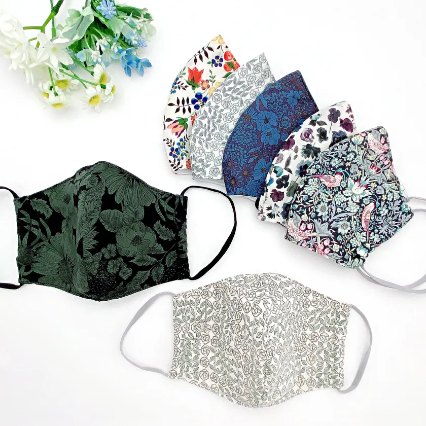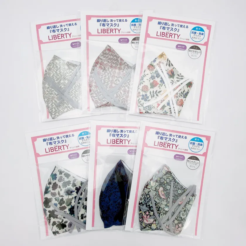 注目の商品は、人気のブランド生地「リバティプリント」を使用したマスク。