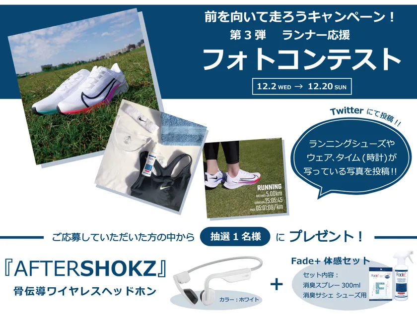 ~人工酵素で瞬間消臭のFade+(フェードプラス)~ “前を向いて走ろう!”キャンペーン第3弾として ランナーを対象に「Twitterフォトコンテスト」を開催!! 開催期間:2020年12月2日(水)~2020年12月20日(日)