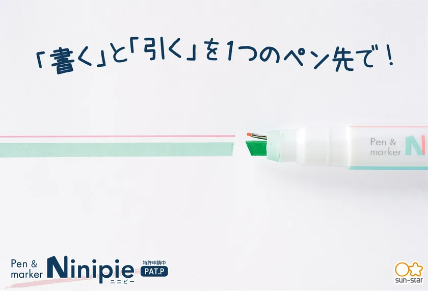 サンスター文具株式会社(本社:東京都台東区、代表取締役社長:小林 大地)は、1つのペン先にペンとマーカーが一体化した特許申請中の新機能ペン『Ninipie(ニニピー)』(200円・税抜/220円・税10%込)を2020年12月下旬より順次発売いたします。