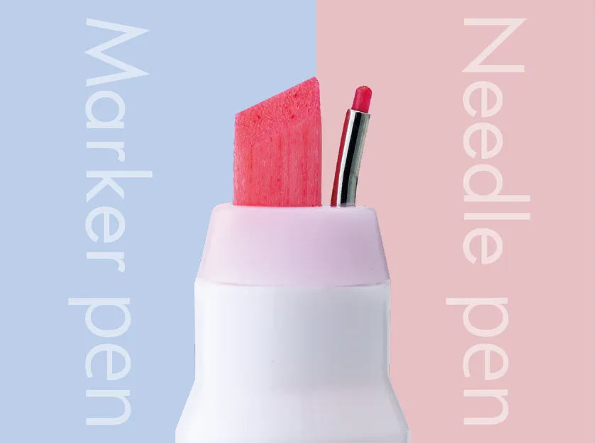 ペン先が一体化することで、ニードルペンとマーカーペンを別々に持つ必要がなく、ペン数を減らして持ち歩くことができるため、ペンを複数使いたい方やスリムタイプのペンケースを使う方にオススメです。