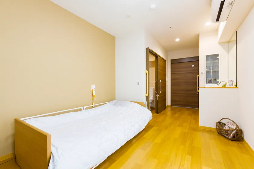 快適にお過ごしいただく居室は、70室をご用意しております。間口の広いドアを採用し車いすでも楽に出入りができるようになっており、全室バルコニーを配し採光にも配慮しております。