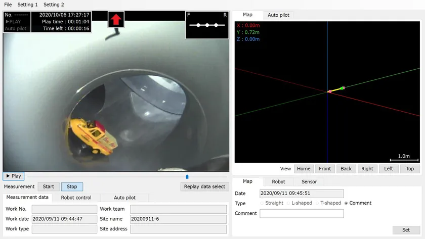 「配管くん(R)」で取得したデータはその場で、映像・図面モニタリングソフト「グッと調査」で確認する事ができます。
