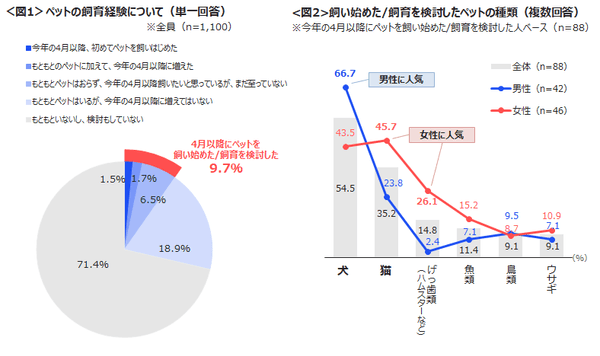 新型コロナの感染が拡大した4月以降に、ペットを飼い始めた/飼育を検討した人は全体の約1割。