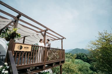 内容:ウェディングセレモニー、フォト、ヘアメイク、装花、ブーケ、ウェディングプランナーの当日サポート、1泊2日室料(1室2名×2サイト貸切分)、朝夕食、ウェルカムドリンク、近隣の温泉利用料