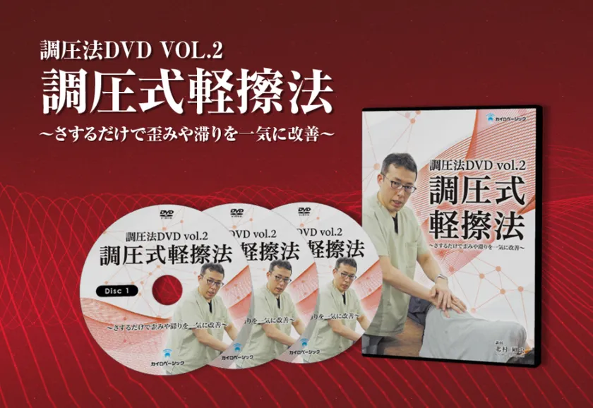今回の新作DVDは、株式会社カイロベーシックにてすでに発売され、大反響のあった「調圧法DVD」に続く、待望のVOL.2「調圧式軽擦法DVD」になります。
