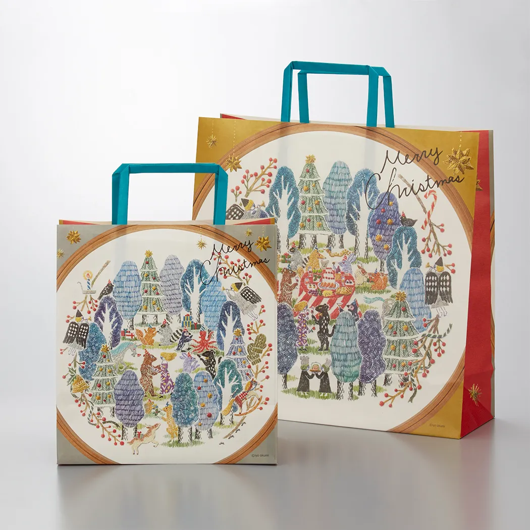 今年のクリスマスは、ソーシャルディスタンスが求められ、より一層“思いやり”や“心温まる”ムードが重要になります。あべのハルカス近鉄本店では、クリスマスケーキやお寿司、オードブルなどの予約販売を強化し、繁忙期の密回避をはじめ、調理器具など家庭内でクリスマスを楽しむことができる商品を提案します。また、刺繍作家・奥見伊代氏とコラボレーションした心温まるデザイン紙袋や店内装飾にも注目です。