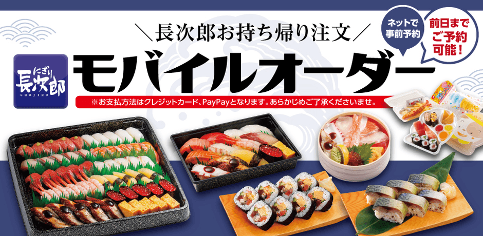 長次郎アプリ&お持ち帰り注文で、さらにお得に、便利にご利用いただけます