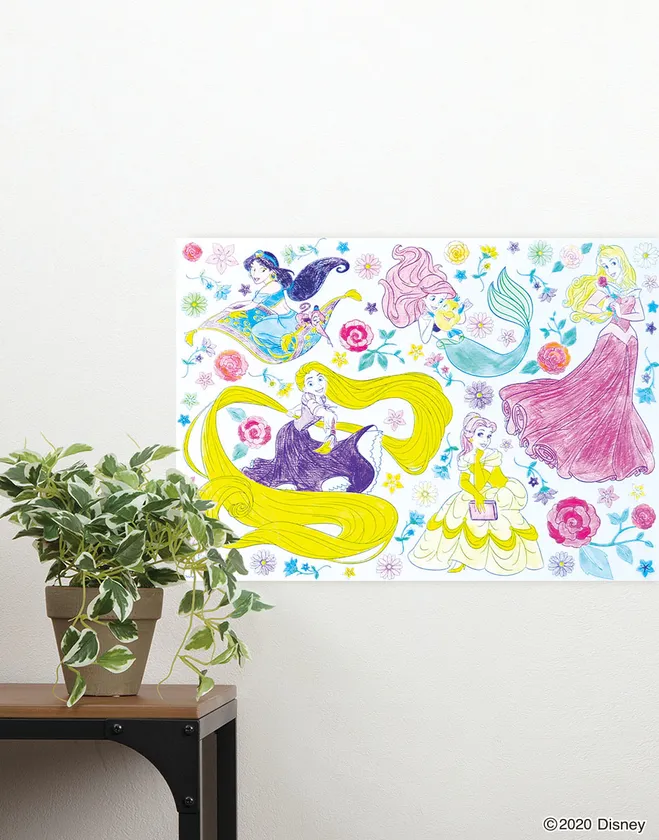 ディズニープリンセス、アナと雪の女王、サンリオキャラクターズ、きかんしゃトーマス、ウルトラヒーローズ、ディノ・アースの全6種。1枚のぬりえシートに多数キャラクターが登場したりと、超ビッグサイズだからこその魅力が満載!