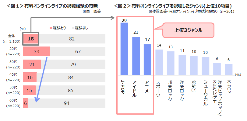 有料オンラインライブの「視聴経験あり」は18%と、約5人に1人が視聴経験あり。