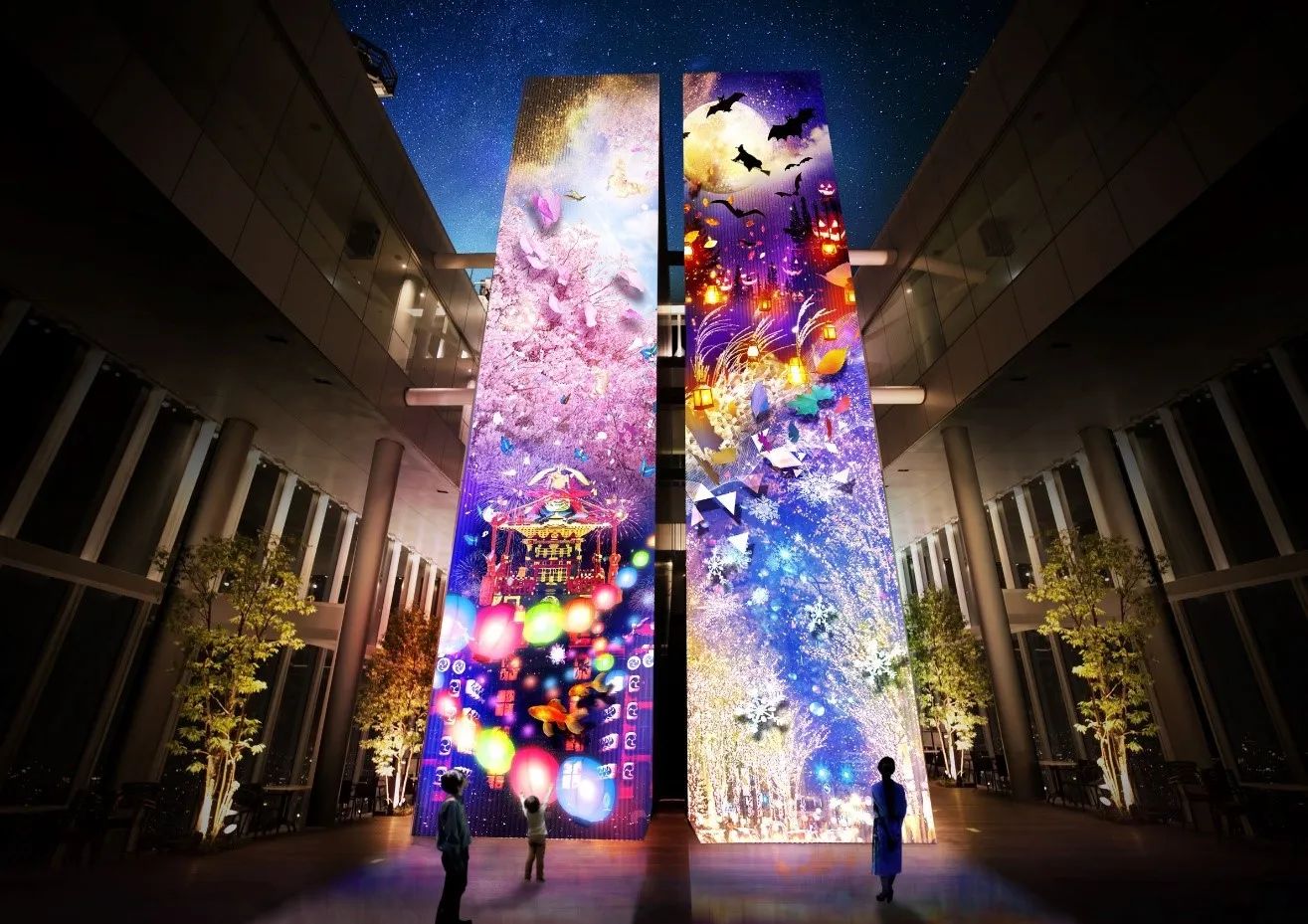 そんな中、ネイキッドと大阪芸術大学は創造性を育む実践型のプロジェクト「0×0=∞(ムゲンダイ)プロジェクト」の授業の成果発表として、近鉄不動産が提供する日本一高いビル、あべのハルカス展望台「ハルカス300」の58 階「ツインタワー」にて、大型プロジェクションマッピング作品を投影します。