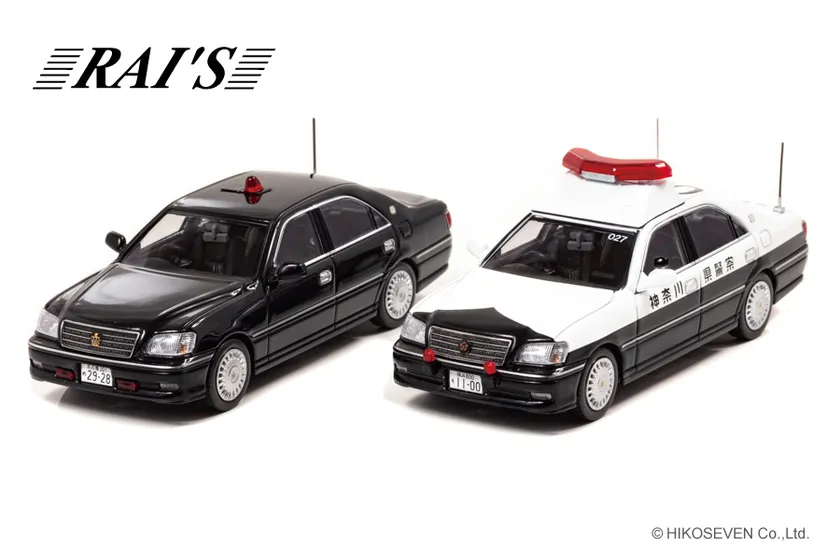 株式会社ヒコセブン(所在地:神奈川県横浜市、代表取締役:原島 行雄)は、オリジナルブランド「RAI'S」からダイキャスト製1/43スケール(約11cm)、トヨタ クラウン (JZS171) 2004 神奈川県警察地域部自動車警ら隊車両(027)と、トヨタ クラウン (JZS175) 2004 愛知県警察交通部交通機動隊車両(覆面 黒)を2020年12月9日より直営店の「モデルギャラリーHIKO7」及び全国模型取扱店にて予約開始致します。