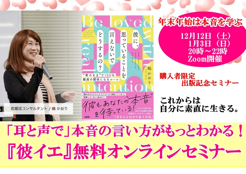 家族や恋人に思っていることを言えない…本音の伝え方を学ぶ! 著書を分かりやすく解説する無料オンラインセミナーを 12月12日・1月3日に開催