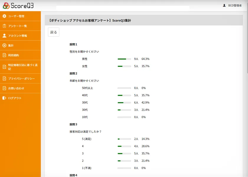 アンケート管理画面