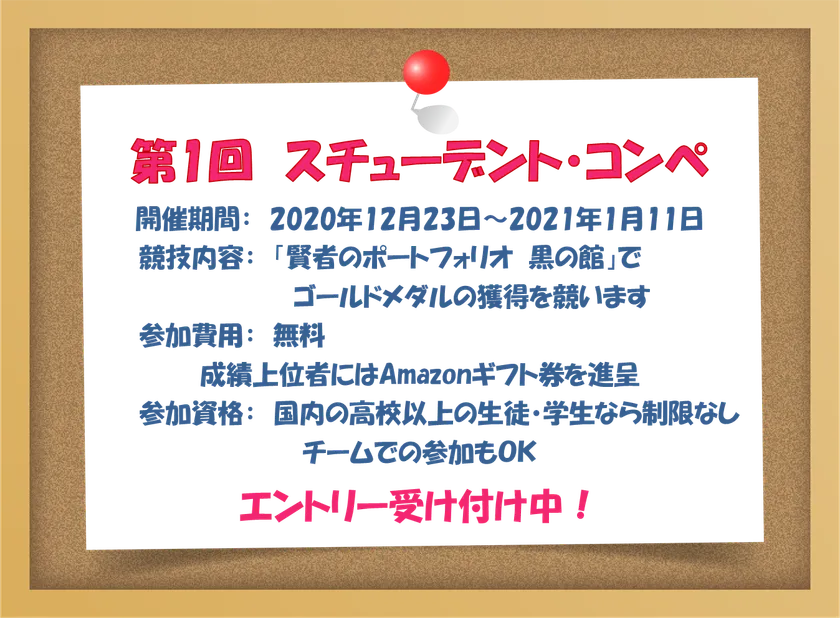 今回の「スチューデント・コンペ」は、コロナ禍で学生生活の制限を強いられている若者に、実体経済と株式投資への関心を持ってもらい、金融リテラシー教育を支援することを目的に、国内の高校以上の生徒・学生にオープンに「賢者のポートフォリオ」を使った株式模擬投資を競っていただこうと開催するものです。