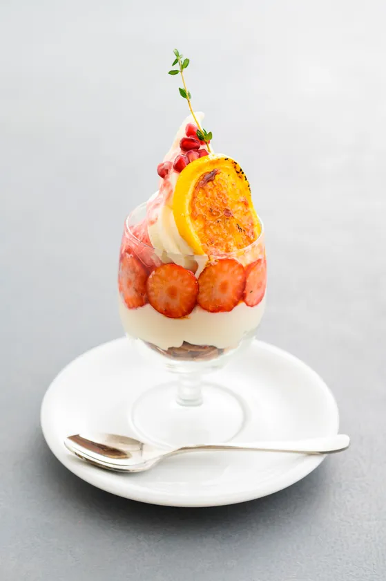 季節のフルーツを使用したパフェ