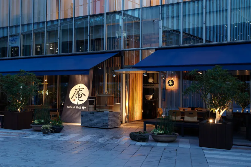 上質な日本酒・焼酎・ワインなどを気軽に楽しんでいただける蕎麦屋として、酒の肴や備長炭で焼く炭火焼き、こだわりの新鮮野菜のメニューを提供しているSoba & BAR An。解放感のあるテラスや竹林を思わせる店内は、気軽に立ち寄れるバールとしてもご利用いただけます。