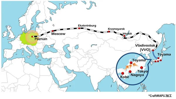 阪急阪神エクスプレスは、2021年1月より、日本発ロシア極東のウラジオストク経由、ポーランドまでシベリア鉄道を利用する「Sea & Rail定期混載サービス」を販売します。