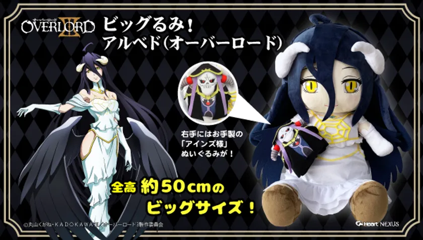株式会社ハート ネクサス事業部では、TVアニメ「オーバーロード」に登場するヒロイン「アルベド」の特別描き起こしデフォルメデザインを使用した「ビッグるみ!アルベド(オーバーロード)」(16,390円 税込/送料・手数料別途)を、バンダイ公式ショッピングサイト「プレミアムバンダイ」( http://p-bandai.jp/?rt=pr )にて、2020年12月10日(木)13時より予約受付開始します。(発売元:株式会社ハート)
