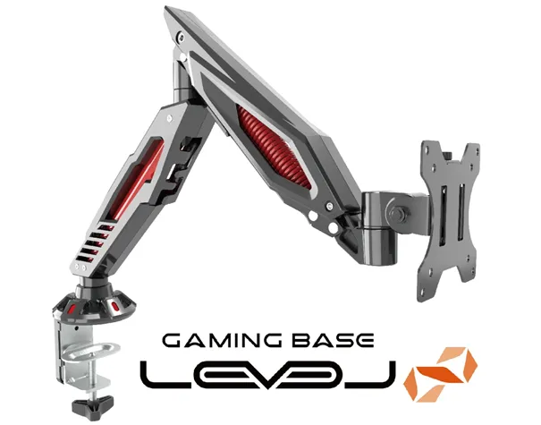 「LEV-ARM02」はスプリングメカニズムを採用したモニターアームです。画面を軽い力で上下左右、前後に動かすことができ、モニターの台座部分がなくなるため、デスクのゲームプレイに必要なスペースを確保して使うことができます。また耐荷重 最大8kgで17~32インチまでの幅広いモニターに対応可能です。