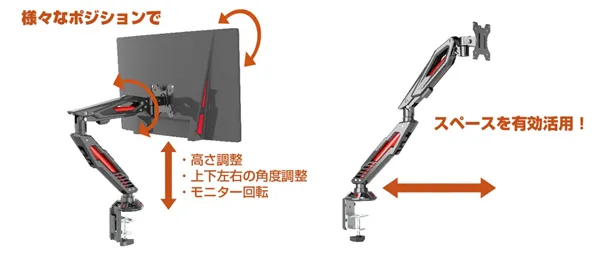 ◇ スプリングメカニズムを採用した『オリジナルゲーミングモニターアーム』