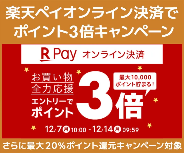 ※「2020年12月楽天ペイ(オンライン決済)対象店舗限定エントリーでポイント3倍キャンペーン」は、エントリーが必要となります。