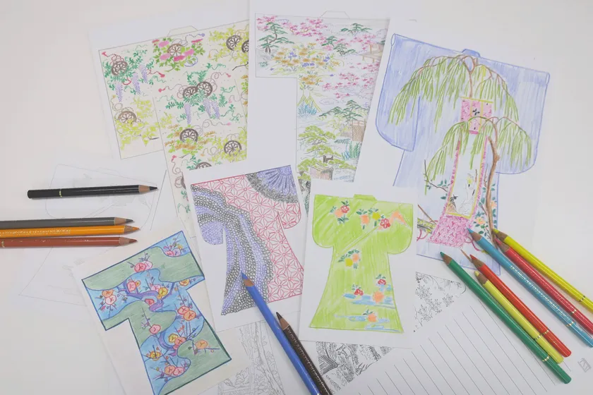 日本の民族衣装として知られるきもの。江戸時代のはじめ(17世紀)には、雛形(ひいながた)と呼ばれる、きもののファッション雑誌が刊行されていました。このコーナーでは雛形をモチーフにしたぬりえに思い思いの色をぬって、細かい模様やデザインの工夫を楽しめます。