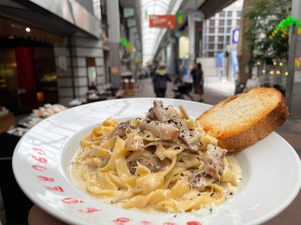 空堀商店街【劇場型】手打ちパスタ専門店「めん料理 鼓腹劇場(こふくげきじょう)」がオープンから人気!