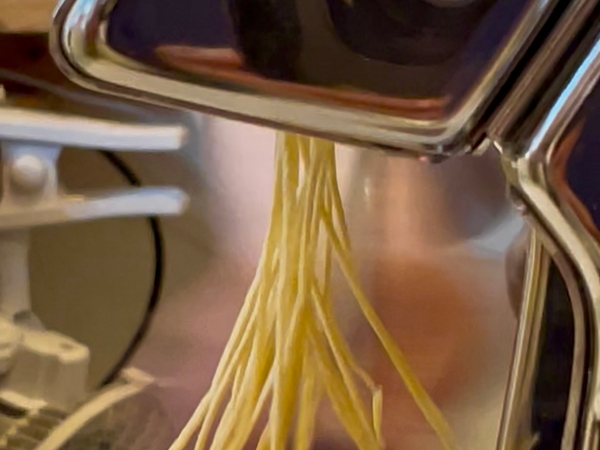 打ちたて・茹でたての生パスタは、二郎系ラーメンでお馴染みのオーション小麦を使用し、わしわし・もちもちとした強いコシが特徴。