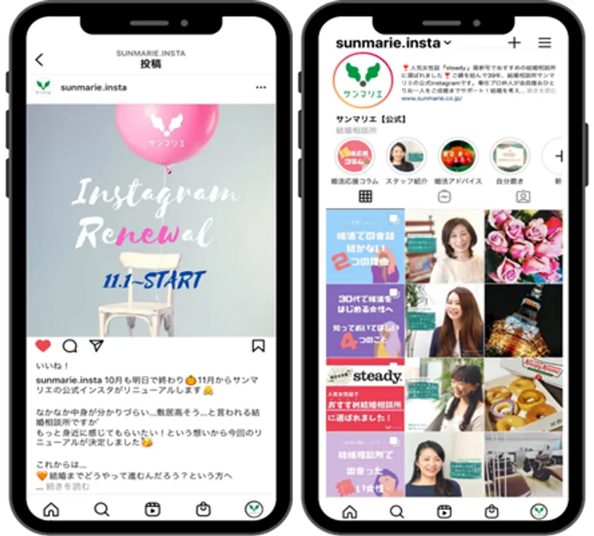 結婚相談所サンマリエ 2020年11月より公式Instagramをリニューアル