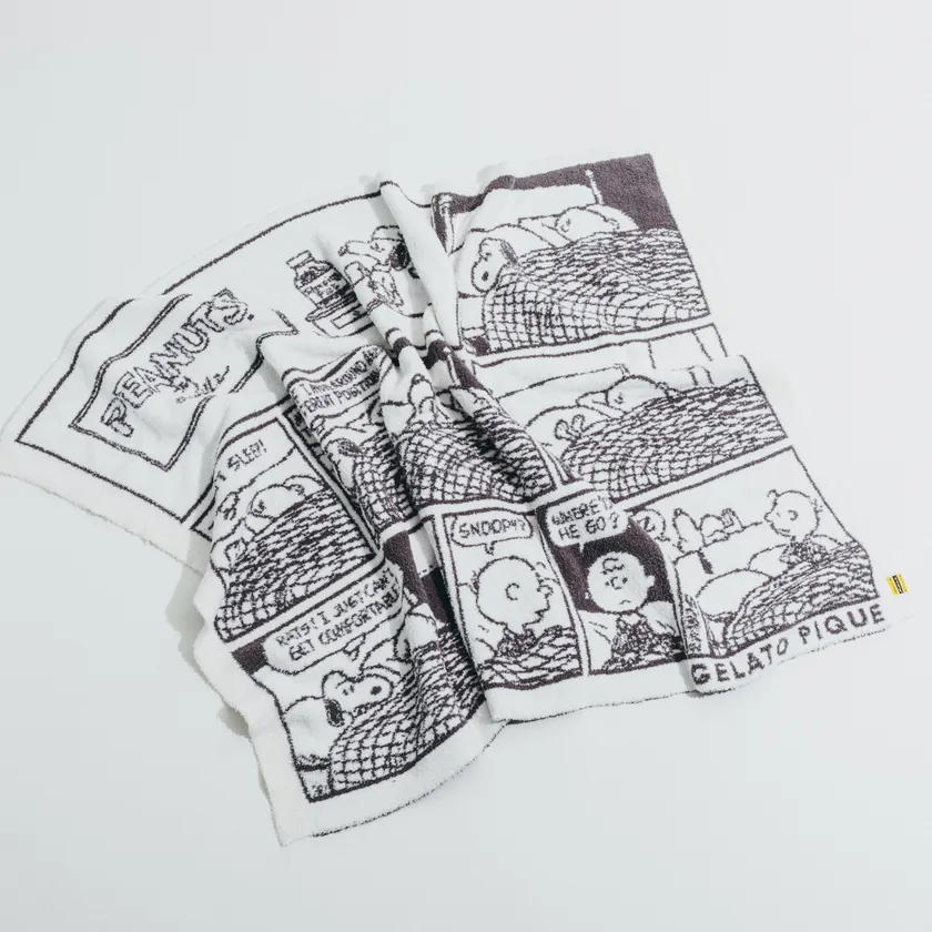 ずっと触っていたくなるような柔らかくてふわふわな生地に、スヌーピーとチャーリー・ブラウンのおやすみシーンをデザインしたブランケットです。