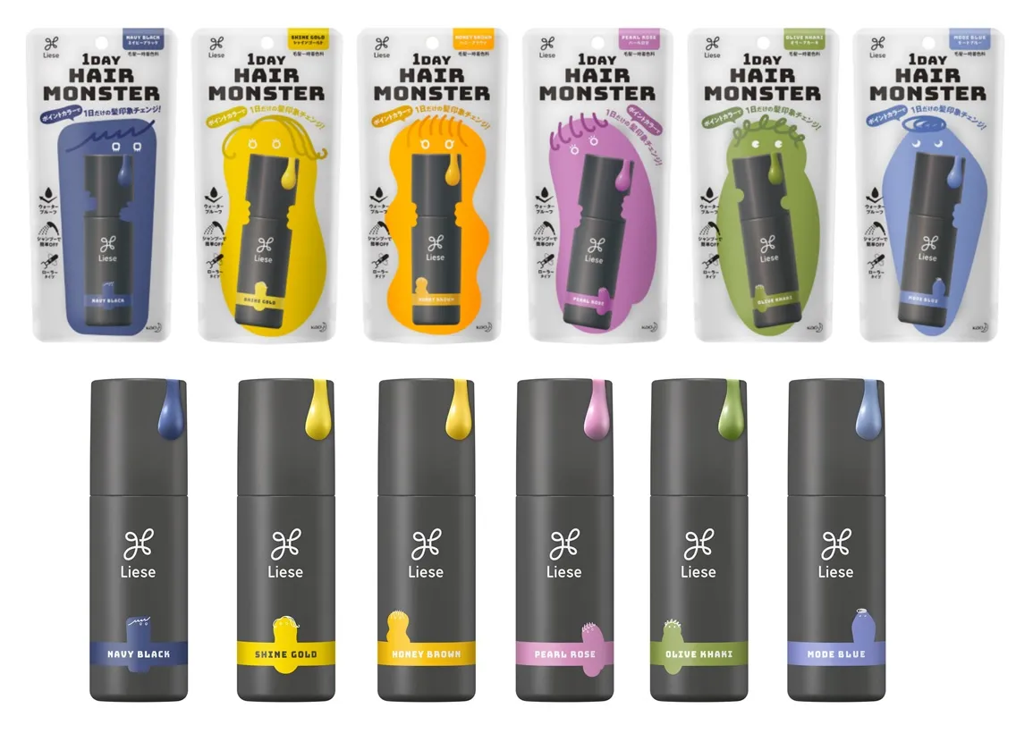 今回共同調査を行った、花王のヘアケアブランド「リーゼ」の「1DAYヘアモンスター」は、普段の髪色に部分的にカラーを加えて、1日だけ気軽にヘアカラーをチェンジすることができる、全6色のポイントカラーリング(毛髪一時着色料)です。