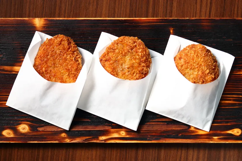 A5ランクの和牛ひき肉、そして川越産の「小江戸黒豚」をあわせて作る自慢のメンチカツは、ジューシーな肉汁が溢れ、ほんのり甘さを感じられる一品です。ソースを付けずにそのままお召し上がりください。