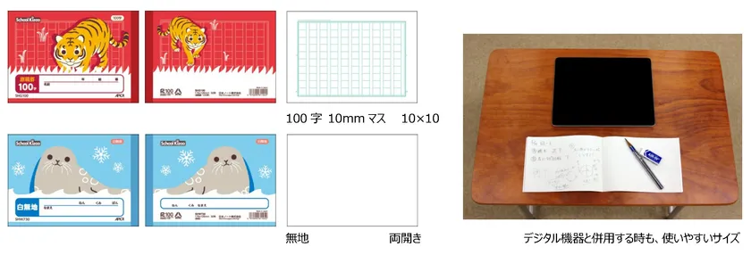 原稿罫は決められた文字数の中で“考えをまとめる力”を、白無地はアイデアや疑問点、質問したいことなど、主体的な学習に必要な“メモ力”をつけることにも効果的なアイテムです。