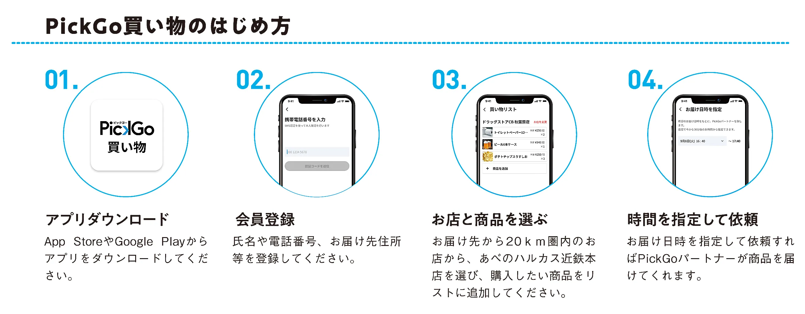 ●サービスのご利用については、PickGoアプリをダウンロードし直接お手続きが必要です。