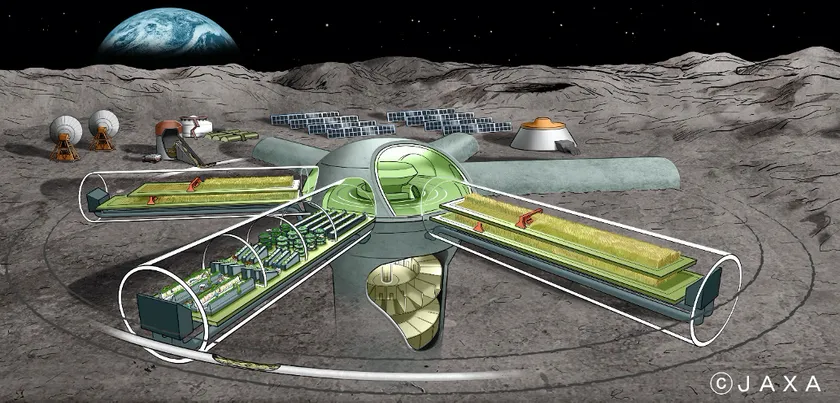 JAXA宇宙探査イノベーションハブが将来構想として検討を行っている、将来の月・火星の探査における長期滞在を想定し、地球からの補給に頼らずに人類が生きていくために必要なエネルギーの自給を目指した月面栽培システムです。2017年に発足したJAXA及び有識者による月面農場ワーキンググループでは、地球上の最先端の農業・バイオ技術を適用した月面農場の概念検討を行っています。この日本の取り組みは世界的にも新しい試みです。