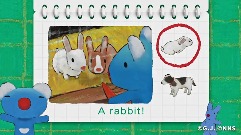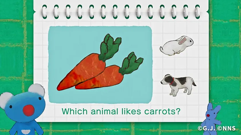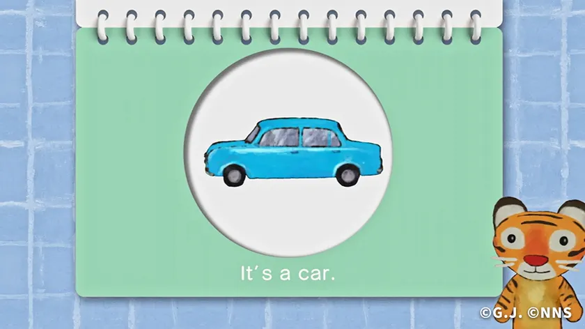 13話のおはなし各話に約2分間の英語レッスンパートを追加し、英単語やフレーズを学べます。学習する英単語やフレーズは各レッスンで3回以上登場。繰り返し導入することで記憶の定着度を高めます。さらにレッスンは子供たちが自ら考えるようクイズ形式で、日本人が苦手な冠詞“a”や複数形などを含め、“It's a 〇〇.”などと文章も覚えられるよう英語特有の表現を自然に覚えられる仕組みです。小学校の英語授業への準備として実用的な日常英会話を身に付けられるようにしました。