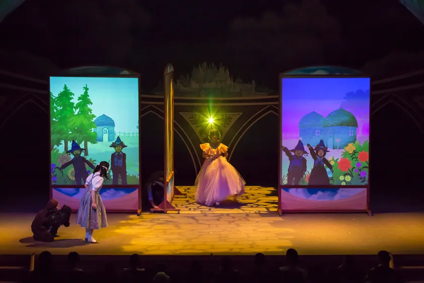 劇団かかし座『オズの魔法使い』は2013年の初演以来、現在までに約1万2千人の観客を動員した、かかし座の大型人気作品です。誰もが知っている「オズの魔法使い」の物語を5面の大型スクリーンを使用した影絵とパペットと俳優の演技、歌で構成したかかし座のオリジナルスタイルでお届けするシャドウ・ファンタジーです。