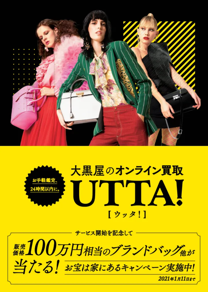 大黒屋オンライン査定『UTTA!』は12月10日より鑑定総額2億円を目指す「帰ってきた!お宝は家にあるキャンペーン」を開始いたします。2019年に実施した「鑑定総額1億円を目指せ!お宝は家にあるキャンペーン」で僅か20日間で1億円に到達するという大反響だったことを受け、今回は目標額が倍の2億円となり帰ってきました。