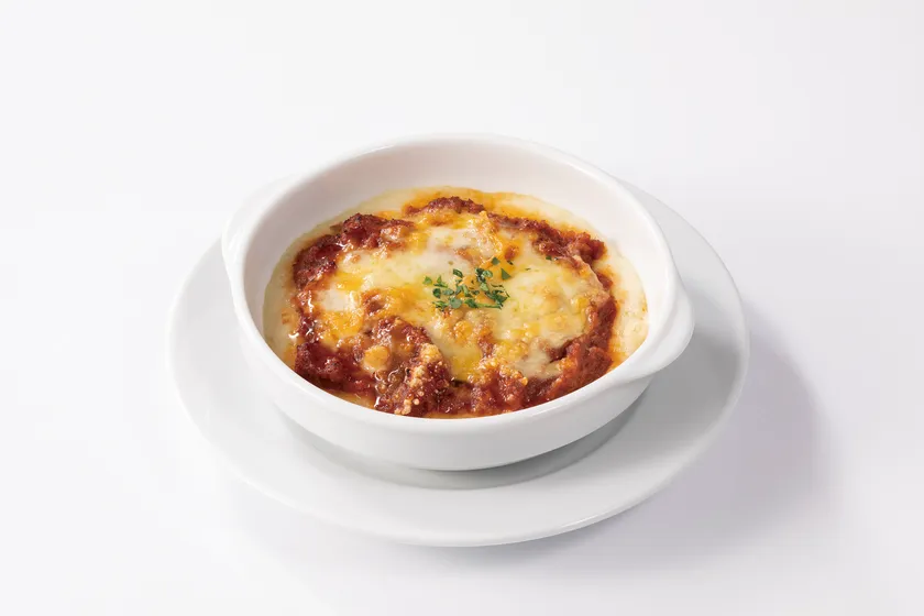 「あったか牛すじ煮込み風グラタン」は、マッシュポテトに牛すじ煮込みをのせ、チーズをかけてグラタン風に焼きあげました。煮込み料理はピエモンテ料理の特徴です。