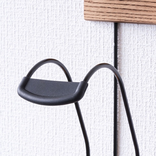 デリケートなヘルメットの内装になるべく無理な力がかからないように工夫しました。ヘルメットを掛けた際はバイクに乗っている時の状態に近い角度(顎を引いた角度)になる様にアーム形状を設計しました。ゴム製の先端キャップで内装を傷めません。