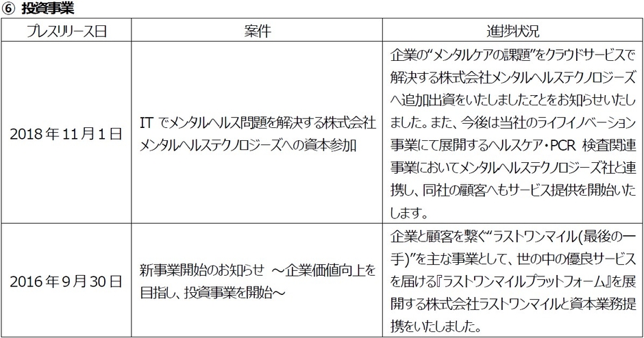 本日時点において、撤退を決定した案件はありません。今後、当社の事業戦略上において撤退を決定した案件が発生する場合には、他案件の進捗状況のご報告とともにお知らせいたします。