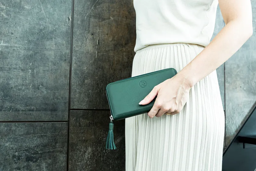 また、安定した蓄財を呼び込む色として縁起のよい「深緑」の革財布は、凛とした品格が漂い、心まで豊かになれる色合いです。