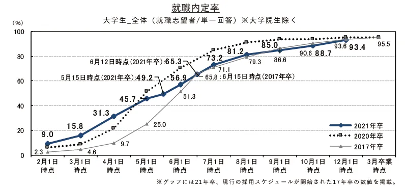 最近では経済産業省が採用継続企業を公表するなど、雇用維持に向けて産官学が引き続きさまざまな支援を行っておりますので、あきらめずに活動を続けていきましょう。
