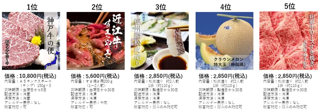 ランキングにノミネートされているのは以下の5商品。いずれも産地直送の人気商材がノミネートされました。